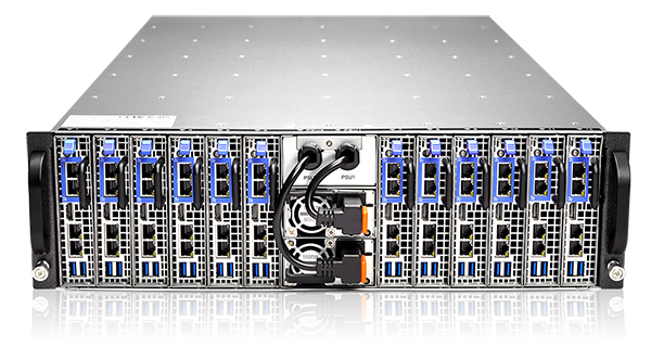 钱能钱包官网的S312-S24R刀片服务器集群系统3U机箱内包括12个E3 处理器刀片服务器,单个处理器带有2个视频处理核心,单个刀片可配置64G内存,2个6TB硬盘,整个系统可配置144TB存储容量,对建立基于云或 hadoop技术的视频处理系统,具有极高的性价比。服务器内部结构如下:
